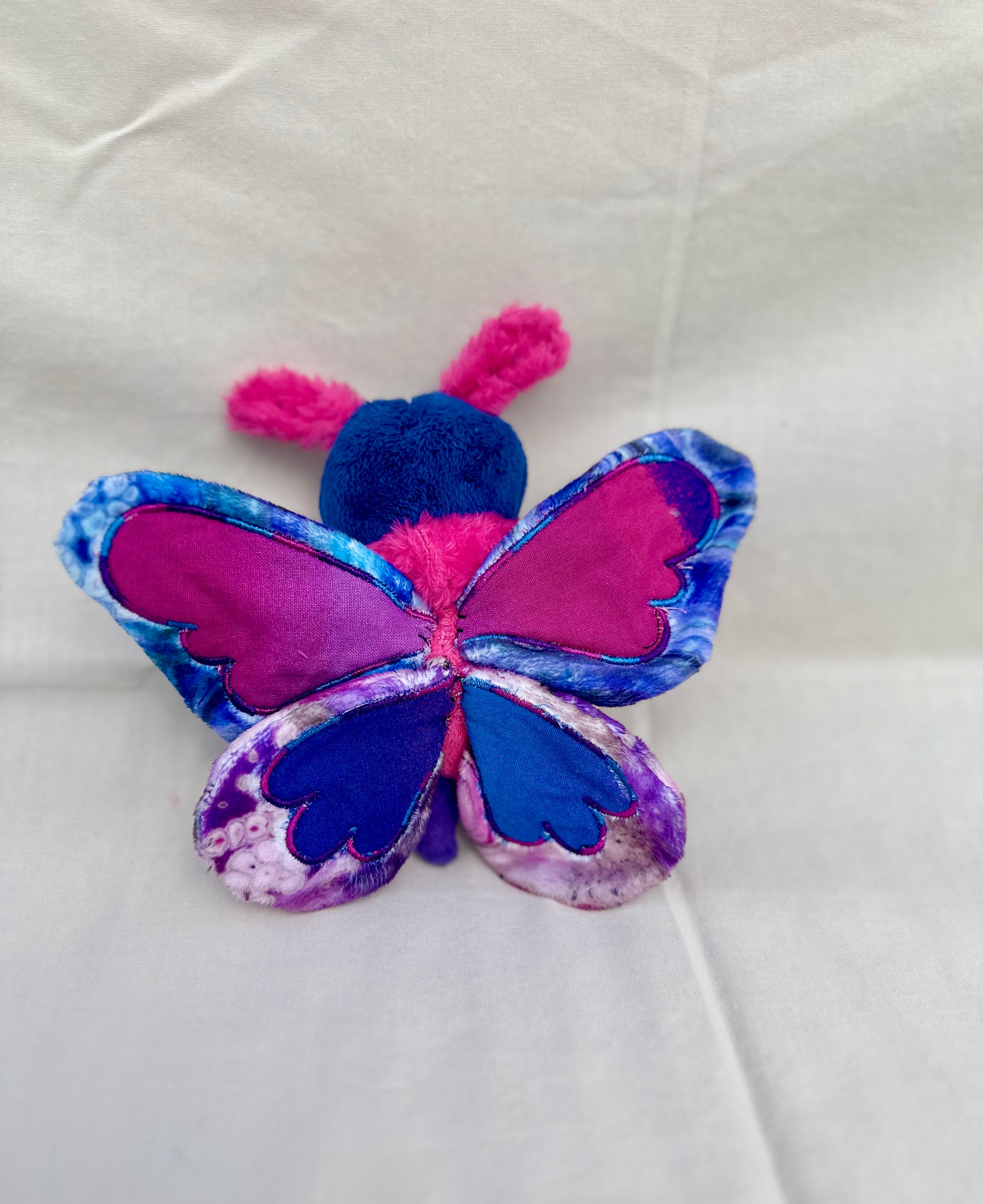 They are made of Minky & Faux Fur. The large Moth & Butterly measures 12 inches & the minis measure 6 inches.